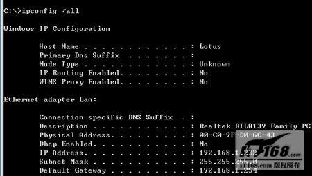 对于ADSL宽带用户而言,日常生活中会受到各种疑难杂症的困扰。由于ADSL宽带是借助电话铜缆的一种宽带接入技术,技术相对复杂,线路、设备或设置每个环节出现问题,都会导致宽带故障。更重要的是,在排除宽带故障时,很多用户会步入一个误区,认为网卡不会出故障,尤其是在网卡集成高度普及的今天,遇到宽带故障时,很少有用户去怀疑网卡是否出现了故障。其实不然,网卡并非金刚不坏之身,也会出故障,在解决宽带线的故障时,一定不要走入网卡不会出现故障的误区。 在宽带维护的过程中,笔者遇到了一些由网卡引发的宽带掉线故障,笔者将故障处理过程写成文字,共享给IT168家庭组网频道的各位读者。 一、集成网卡无法正常工作 故障表现:使用的是NVIDIA芯片组主板集成的网卡,Windows XP SP2践作系统,PPPoE虚拟拨号ADSL用户。拨号时,弹出远程计算机无响应的提示。 故障解析:从故障的表面现象来看,是ADSL宽带Modem的故障。更换了一台可以正常工作的ADSL宽带Modem后,仍旧无法拨号。使用宽带维护人员的笔记本测试,发现ADSL宽带线路正常。看来,板载集成的网卡是无法正常工作的。在“设备管理器”中可以看到板载网卡驱动程序已经安装,IP地址等信息的配置也完全正确, 大的疑点就是本地连接中收到和发送的数据全部为0。删除现有驱动程序,重新安装驱动也无济于事。 在DOS提示符下,输入Ping 127.0.0.1命令测试网卡能否正常工作,发现网卡的工作正常。既然自身没有什么问题,为何网卡不能与交换机进行通讯呢? 再检查网线,发现网线的连接也非常好,看来,还是网卡的设置出现了问题。在DOS提示符下,输入ipconfig /all查看网卡的网络配置信息,突然发现网卡的MAC地址全部是0。 众所周知,每块网卡在全球都拥有一个唯一的MAC地址,全部为0的MAC地址是非法的MAC地址,自然无法连接网络了。  | | 正确的MAC地址信息 |