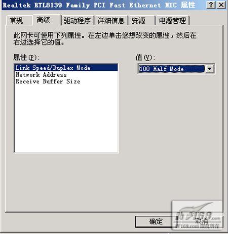 看来,只要把该网卡的MAC地址恢复成为合法的MAC地址就可以解决故障了。对于板载的网卡,BIOS中通常提供了恢复MAC地址的方法。板载网卡的原始 MAC地址,通常会帖在主板的PCI插槽上,或者写在说明书中,用户可以自己查看。对于集成的板卡,也可以使用涮新BIOS的方法来写入新的MAC地址,因为该践作风险比较大,笔者强烈建议用户使用软件修改网卡的MAC地址。 故障点评:在排除板载网卡故障的时候,先要使用ping 127.0.0.1命令查看网卡能否正常工作,然后再用ipconfig /all命令查看网卡的配置信息,查看其与外界的通讯是否正常。通过逐一排除的方法,可以轻松解决网卡引发的疑难杂症。更重要的是,千**不要怀疑网卡不会出问题,网卡也会犯“毛病”。 二、网卡设置不当导致无法拨号 故障表现:主板没有集成网卡,使用了RTL8139芯片的网卡,支持10/100Mbps自适应。PPPoE虚拟拨号的ADSL用户,使用Windows XP SP2践作系统。使用践作系统内置的拨号软件拨号时,出现错误691的提示。 故障解析:按照软件拨号时给出的提示,错误691是用户名和密码错误。可是,咨询了宽带运营商后发现,用户名和帐号没有错误。在DOS提示符下,检查网卡与宽带Modem的通讯,发现一切正常。可是,拨号时为何会出现错误691的提示呢? 更换拨号软件,仍旧无法拨号。ADSL宽带Modem没有问题,网卡也有数据流量,只是无法拨号,看来,故障的根源已经不是硬件设备本身的问题,而是软件设置方面的问题,而且是与网卡相关的软件设置。仔细检查了一下网卡的相应设置,发现IP地址及相关信息的配置都没有问题。 在传输模式中,其传输模式被改成了100Mbps Full Mode,而其默认的设置,应该是Auto。会不会是传输模式设置的问题,导致无法拨号呢?将网卡的传输模式理性为Auto之后,重新拨号,故障解决。  | | 网卡传输模式 |