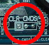 排除方法:仔细检查主板的CMOS跳线,是否正常设置在1-2位置。如果无法正确判别CMOS插针的位置,我们可以通过观察CMOS跳线边缘有无白色的宽线,如下图所示,一般情况下有线标记的即是第1脚。