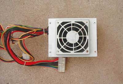 在动手之前,我们先来大体了解一下计算机开关电源的工作原理。电源先将高电压交流电(220V)通过整流二极管整流以后成为高压脉冲直流电,再经过两个大容量电解电容(黑色的圆柱状的东西)滤波以后成为高压直流电。通过高频变压器降压输出我们需要的不同的电压供计算机使用。同时工作的还有各种保护电路,实时监测电源的各项数据,一旦数据与设定的正常值偏离较大时,就会立即切断电源输出,停止供电。