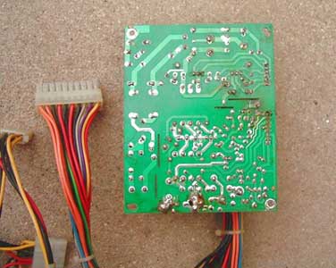直到有一天早晨,当我再次启动电脑的时候,电脑突然启动不了了,主要现象是反复重新启动,发展到 后竟然只听到风扇断续转动的声音(很有规律的转2秒钟,停半秒),什么显示都没有了。通过用标准的大电源测试,计算机工作一切正常,足以断定那个少见的小电源彻底坏了。这对于天天使用电脑的我来说,真是着急。买又买不到,电脑城那些搞维修的JS们又不修,由于笔者还有一些电子基础, 后,实在是忍无可忍,决定自己修理试试。