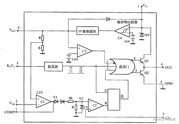 图 UC3842内部电路框图